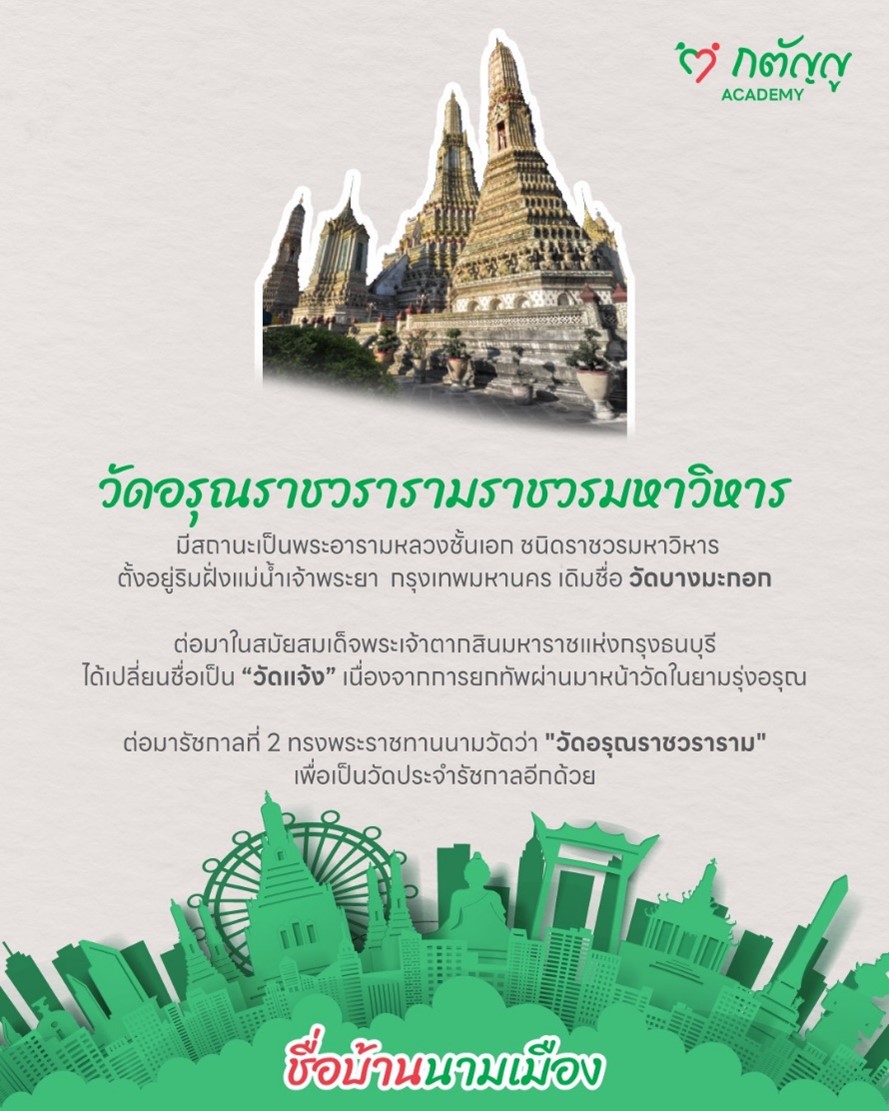 วัดอรุณราชวราราม หรือที่นิยมเรียกว่า “วัดอรุณ” เป็นพระอารามหลวงชั้นเอก ชนิดราชวรมหาวิหาร ตั้งอยู่ริมฝั่งแม่น้ำเจ้าพระยาฝั่งธนบุรี มีประวัติความเป็นมายาวนานตั้งแต่สมัยอยุธยาตอนปลาย และมีความสำคัญสูงสุดในยุคกรุงธนบุรีจนถึงกรุงรัตนโกสินทร์