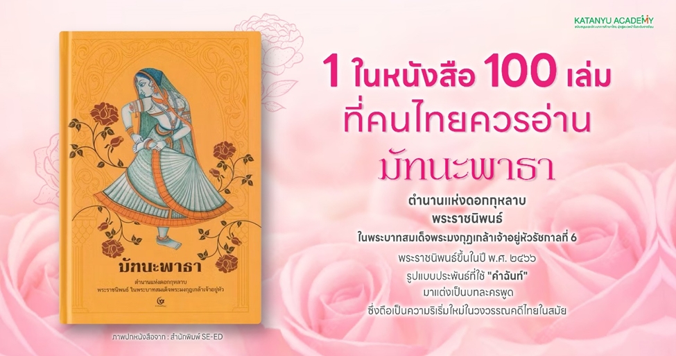 "มัทนะพาธา" (หมายถึง ความเจ็บปวดแห่งความรัก) เป็นบทละครพูดคำฉันท์ 5 องก์ ที่มีความสำคัญอย่างยิ่งในประวัติศาสตร์วรรณคดีไทย พระบาทสมเด็จพระมงกุฎเกล้าเจ้าอยู่หัว (รัชกาลที่ 6) ทรงพระราชนิพนธ์ขึ้นเมื่อปี พ.ศ. 2466 โดยทรงผูกเรื่องราว ตำนานดอกกุหลาบ ขึ้นใหม่ทั้งหมด เพื่อถ่ายทอดแก่นเรื่องเกี่ยวกับความรัก ความทุกข์ และการยืนหยัดในศักดิ์ศรี