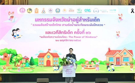 กรมกิจการเด็กและเยาวชน จัดพิธีเปิดมหกรรมจังหวัดน่าอยู่สำหรับเด็ก “รวมพลังสร้างเด็กไทย สานต่อน้ำพระทัยพระพันปีหลวง” และเวทีสิทธิเด็ก ครั้งที่ 36 “พลังแห่งความอ่อนโยน : The Power of Kindness” เนื่องในวันสิทธิเด็กสากล ประจำปี 2568 เมื่อวันพฤหัสบดีที่ 20 พฤศจิกายน 2568 ที่ผ่านมา โดยมี นายอัครา พรหมเผ่า รัฐมนตรีว่าการกระทรวงการพัฒนาสังคมและความมั่นคงของมนุษย์ (รมว.พม.) เป็นประธานในพิธีเปิด นางอภิญญา ชมภูมาศ อธิบดีกรมกิจการเด็กและเยาวชน นายมณฑล ภาคสุวรรณ์ เลขาธิการคณะกรรมการส่งเสริมการศึกษาเอกชน และคณะผู้บริหารกระทรวง พม. เข้าร่วมเป็นเกียรติในงาน พร้อมด้วย เด็กและเยาวชน สภาเด็กและเยาวชน เครือข่ายเด็กและเยาวชน ผู้แทนสำนักงานพัฒนาสังคมและความมั่นคงของมนุษย์จังหวัด จำนวน 76 จังหวัด บ้านพักเด็กและครอบครัว จำนวน 76 จังหวัด องค์กรปกครองส่วนท้องถิ่น เจ้าหน้าที่จากหน่วยงานภาครัฐ ภาคเอกชน ภาคประชาสังคม และองค์กรภาคีเครือข่าย รวมทั้งสิ้น 1,000 คน โดยภายในงานมีพิธีมอบประกาศเกียรติคุณแก่องค์กรปกครองส่วนท้องถิ่น ประกอบด้วย “ศูนย์ชุมชนคุ้มครองเด็กต้นแบบดีเด่น” จำนวน 11 รางวัล และ “ศูนย์ชุมชนคุ้มครองเด็กต้นแบบระดับจังหวัด” จำนวน 47 รางวัล พร้อมทั้งเวทีเสวนาในหัวข้อ “ความร่วมมือเพื่อพัฒนาคุณภาพชีวิตเด็กในท้องถิ่น ด้วยการขับเคลื่อนงานชุมชนภายใต้แนวคิด ‘ชุมชนนำ’” และการเยี่ยมชมนิทรรศการ โดยมี นางสาวสุชาดา หมื่นกล้า รองอธิบดีกรมกิจการเด็กและเยาวชน ณ โรงแรมปรินซ์พาเลซ กรุงเทพมหานคร